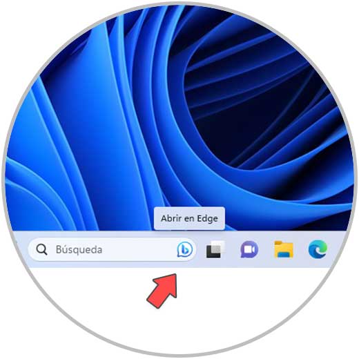 Para abrirlo pulsamos sobre el icono de chat (Abrir en Edge) ubicado al lado de la búsqueda de Inicio: