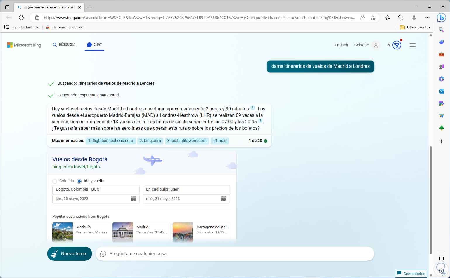 Si es necesario realizar algún viaje, Bing Chat será el aliado para ver frecuencias o rutas: