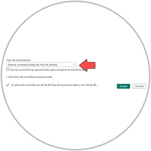 Ahora tenemos que elegir el tipo de combinación que queremos realizar. Puedes elegir en la lista desplegable la opción que mejor se ajuste al cruce que estás realizando. Por norma, también puedes crear una combinación completa de las dos tablas para que puedas ver en un solo archivo todas las columnas; Y a continuación en el siguiente paso, eliminar las columnas que no necesitas, o que están duplicadas si fuera el caso. Nosotros vamos a seleccionar “todas las columnas”.