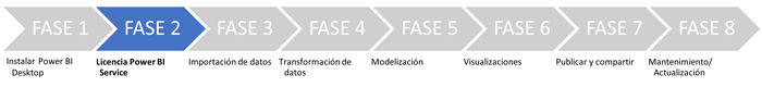 Así como también es de suma importancia, en este contexto de aprendizaje, entender cómo encajan estas funciones y herramientas de Power BI dentro de un proyecto "faseado", con diferentes etapas. Como veremos a continuación es un proceso natural y lógico que nos aportará una visión global de proyecto, y un mejor entendimiento de qué es Power BI, y de cómo nos puede ayudar Power BI Desktop a la hora de trabajar con datos, realizar informes profesionales y compartirlos.