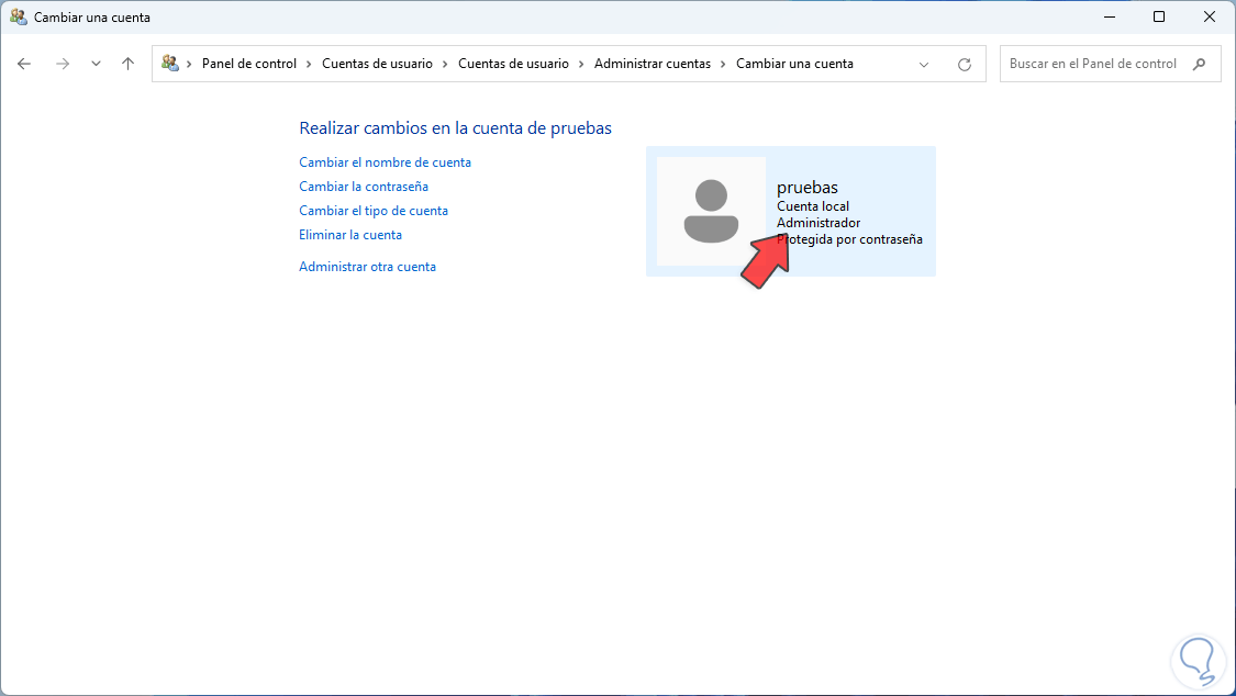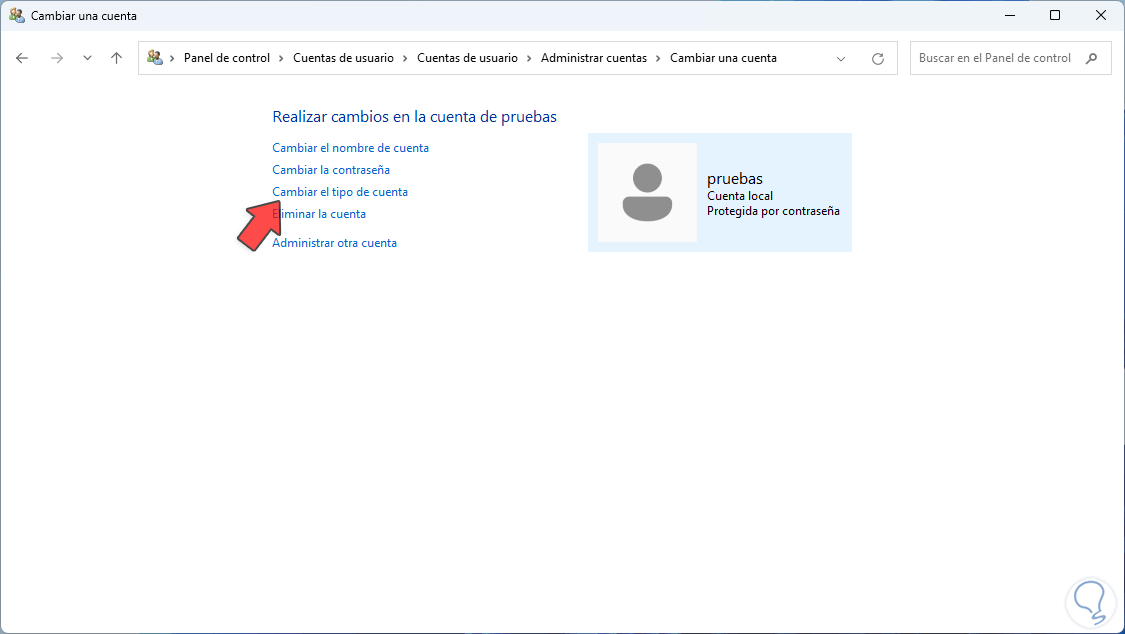 y veremos las siguientes opciones. Damos clic en "Cambiar el tipo de cuenta"
