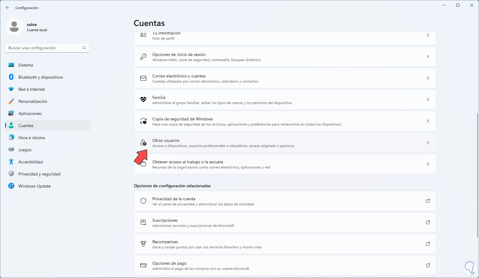 En la sección de Otros usuarios damos clic sobre el usuario: