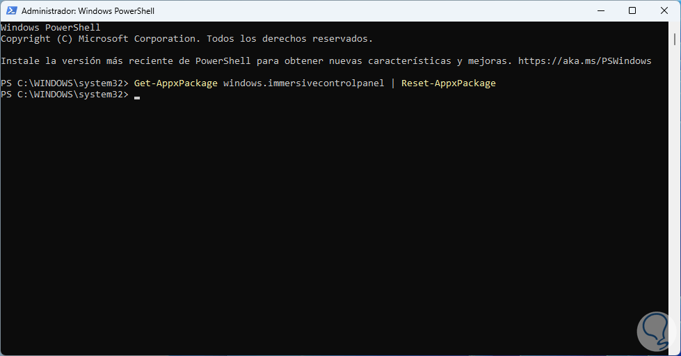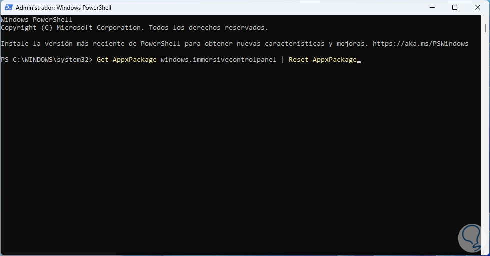 Get-AppxPackage windows.immersivecontrolpanel | Reset-AppxPackage