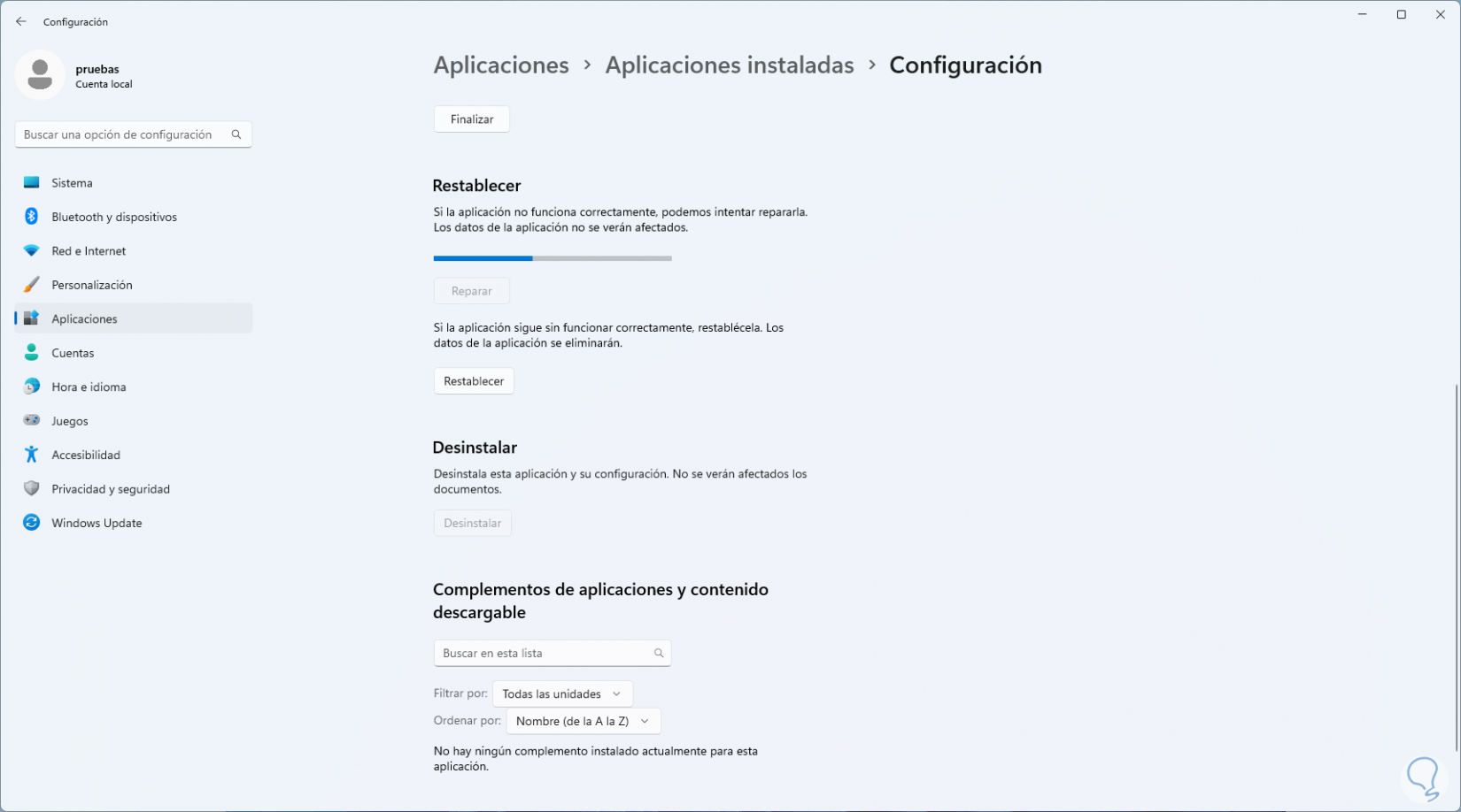Es posible realizar dos tarea esenciales sobre Configuración como lo son repararla y restablecerla, ambas permiten que su funcionamiento sea optimizado de nuevo y tengamos acceso a las diversas opciones de uso.