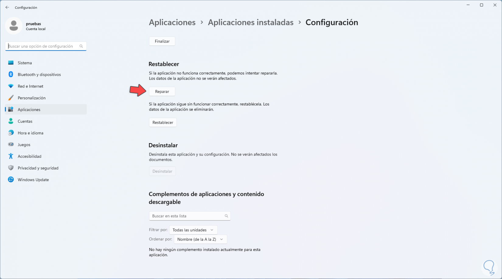 Se abrirá lo siguiente. Damos clic en "Reparar":