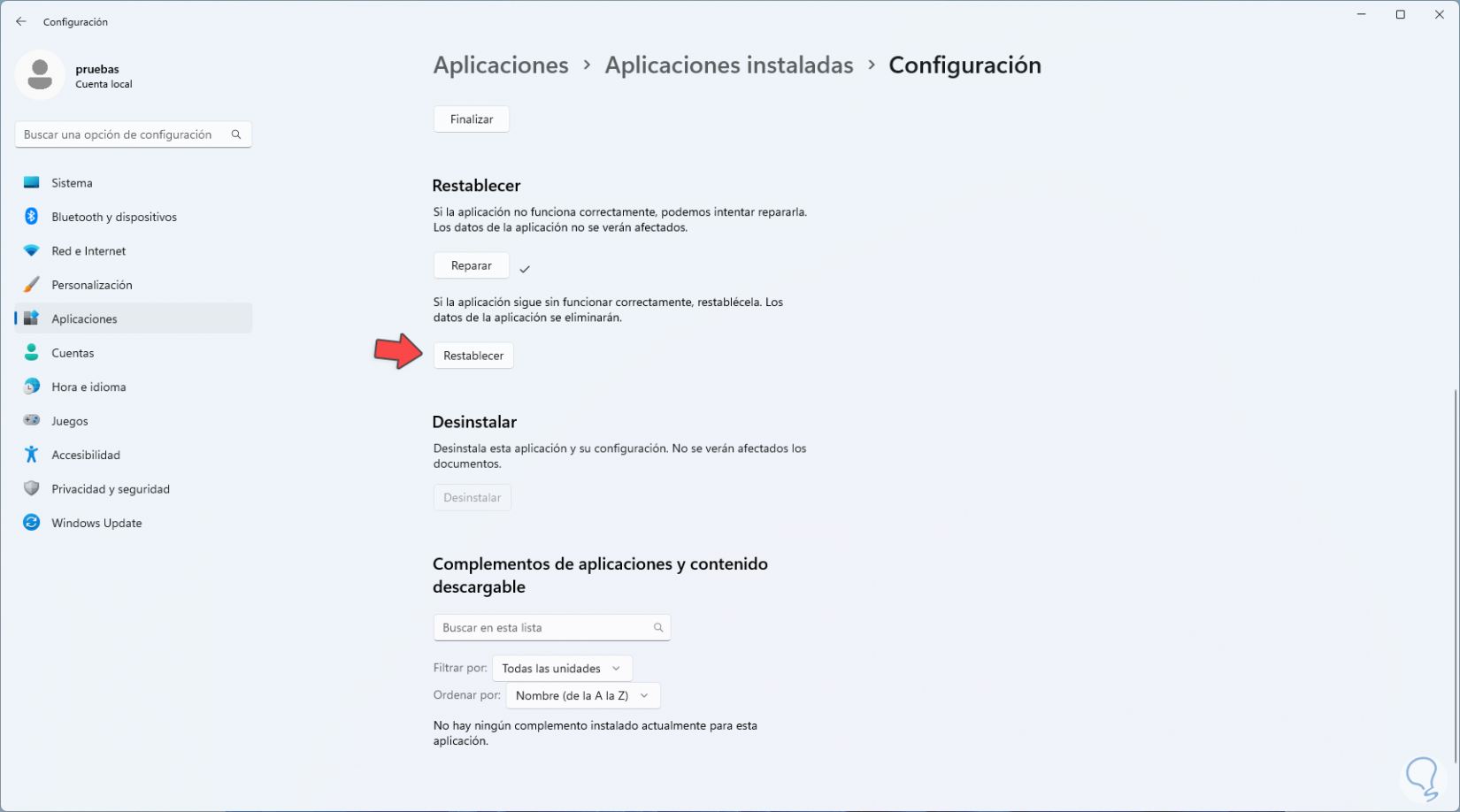 2 Solucionar Configuración Windows 11 restableciendo Configuración