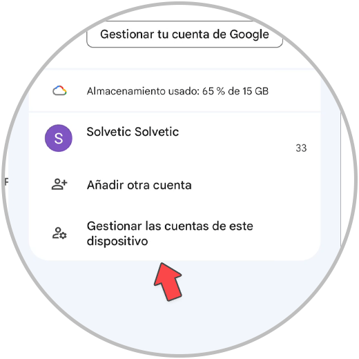 Ahora pulsamos sobre la opción "Gestionar las cuentas de este dispositivo":