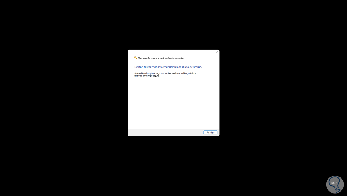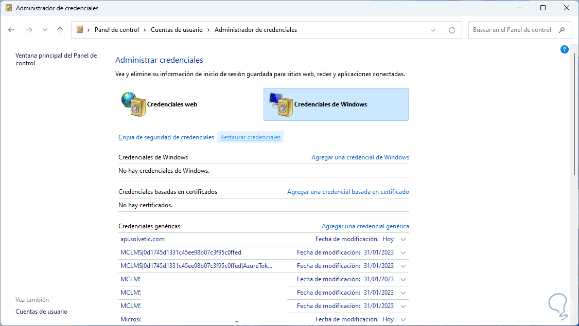 Para restaurar las credenciales damos clic en "Restaurar credenciales":