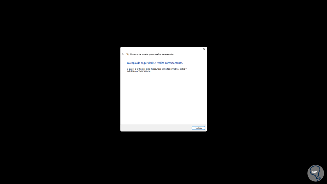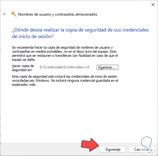 Por temas de seguridad será posible crear copias de seguridad de las credenciales, esto con el fin de disponer de ellas, para este respaldo daremos clic en "Copia de seguridad de credenciales":