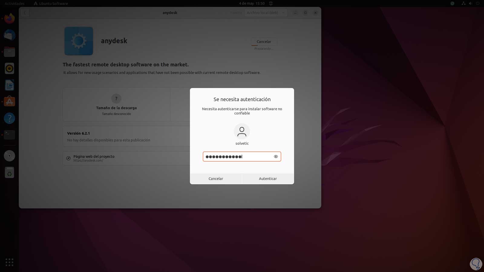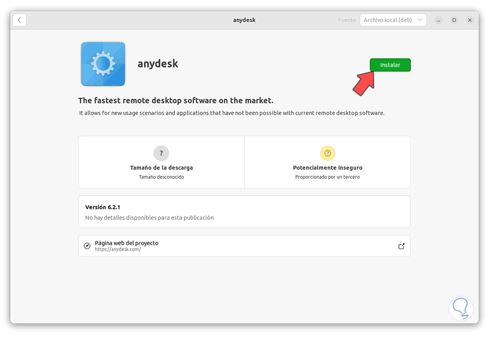 Alternativamente puedes validar si AnyDesk no está en el Centro de software de Ubuntu: