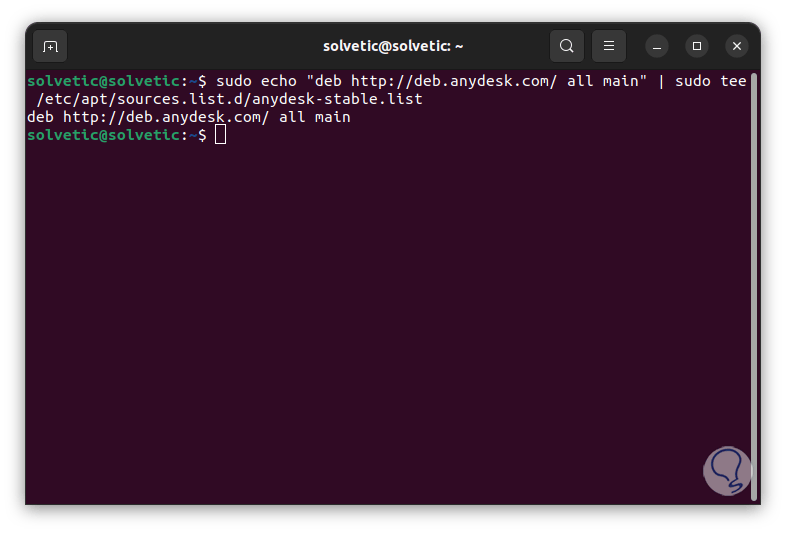 sudo echo "deb http://deb.anydesk.com/ all main" | sudo tee /etc/apt/sources.list.d/anydesk-stable.list