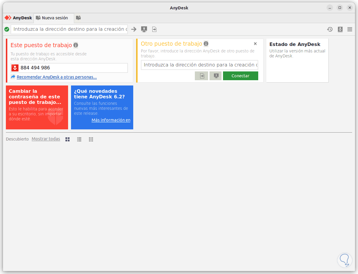 Cerramos esta ventana y abrimos AnyDesk: