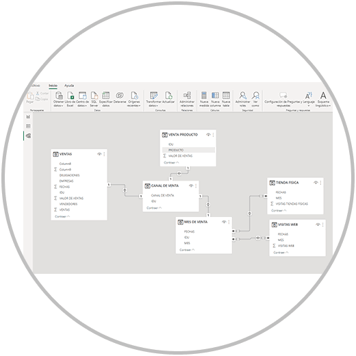 El modelo de datos va un paso más allá para casuísticas más complejas donde la combinación de diferentes fuentes y conjuntos de datos, requiere la creación de una estructura de tablas que estén relacionadas entre sí.