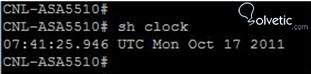Le preguntaremos fecha y hora al Firewall con el comando sh clock: