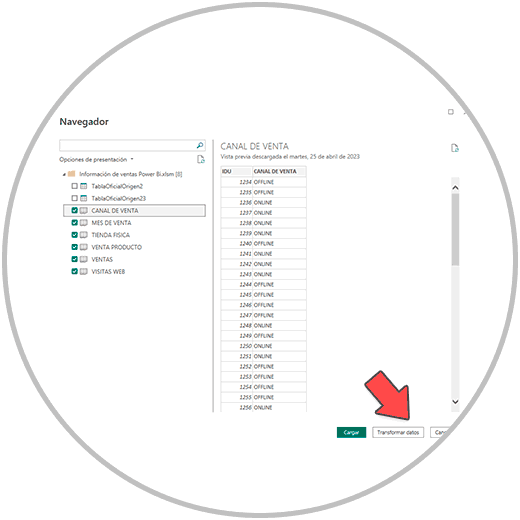Una vez seleccionadas las hojas a importar, vamos a hacer clic en “Transformar datos”.