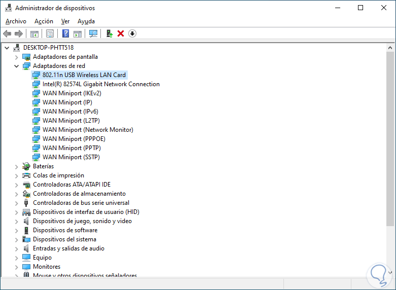 Después del análisis el adaptador Wi-Fi será visible: