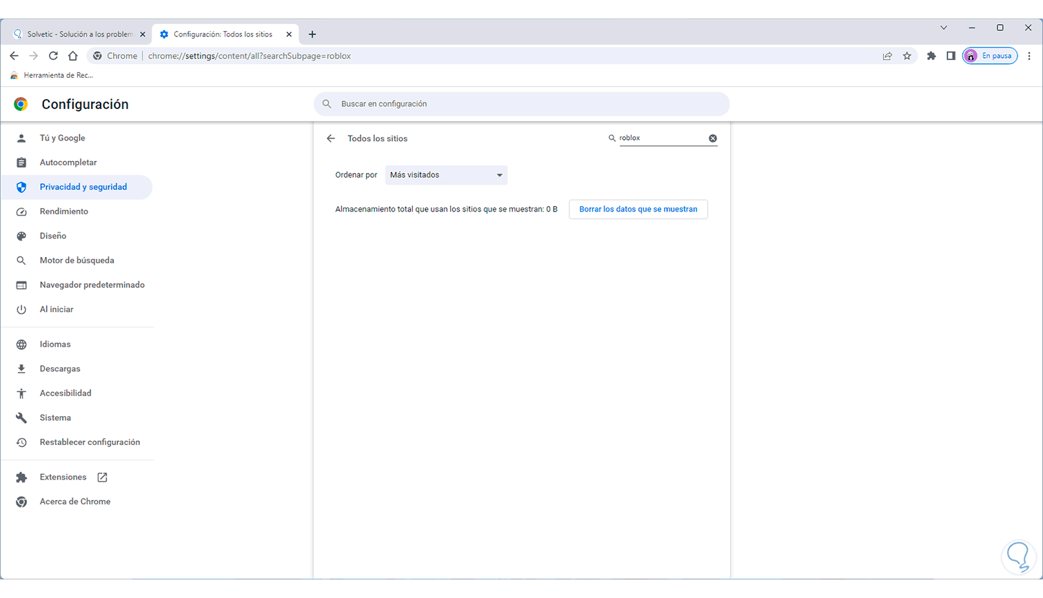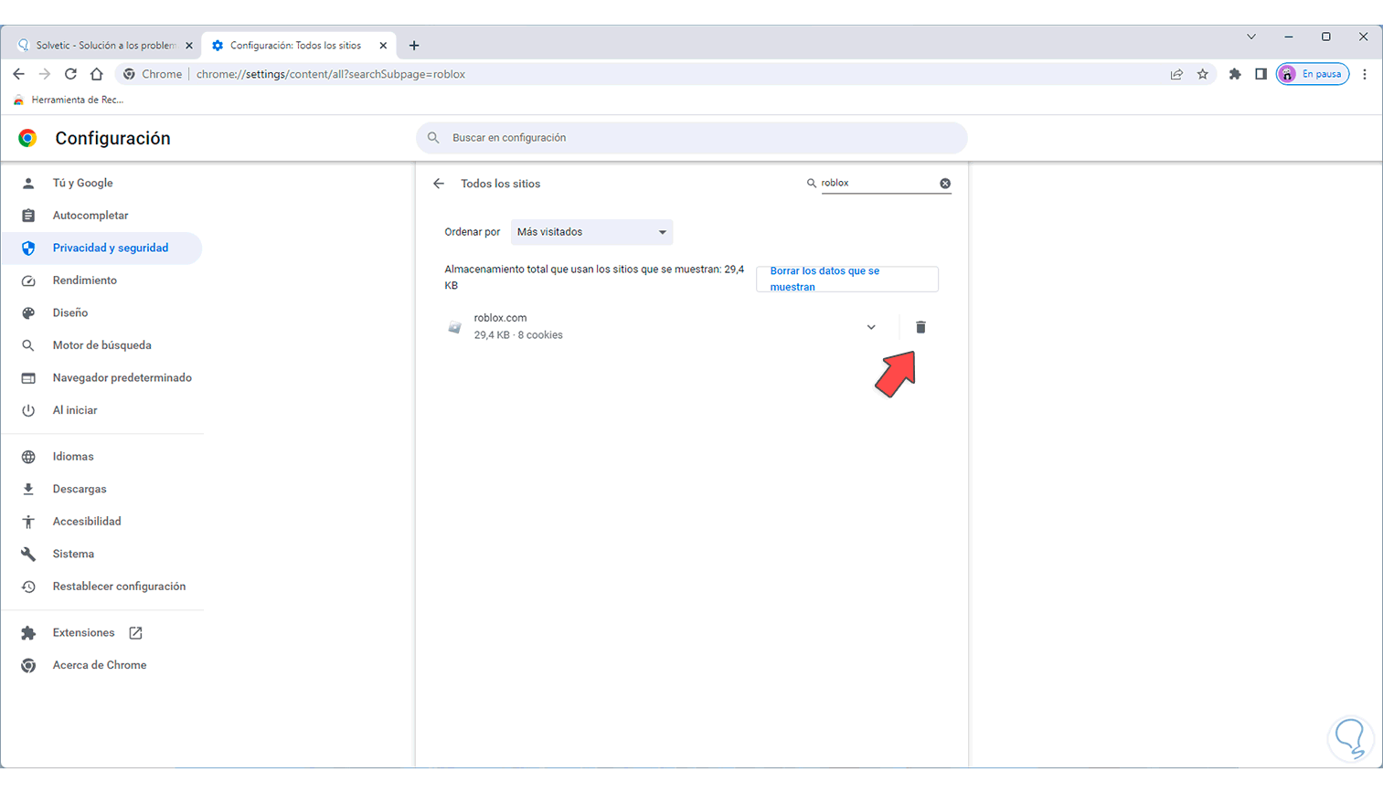 Esta opción aplica para borrar las cookies y datos de Roblox ya que cuando se accede a través de la web como mencionamos se crean archivos con detalles de este pero un exceso de estos datos y cookies pueden tener un impacto negativo en el uso de Roblox.