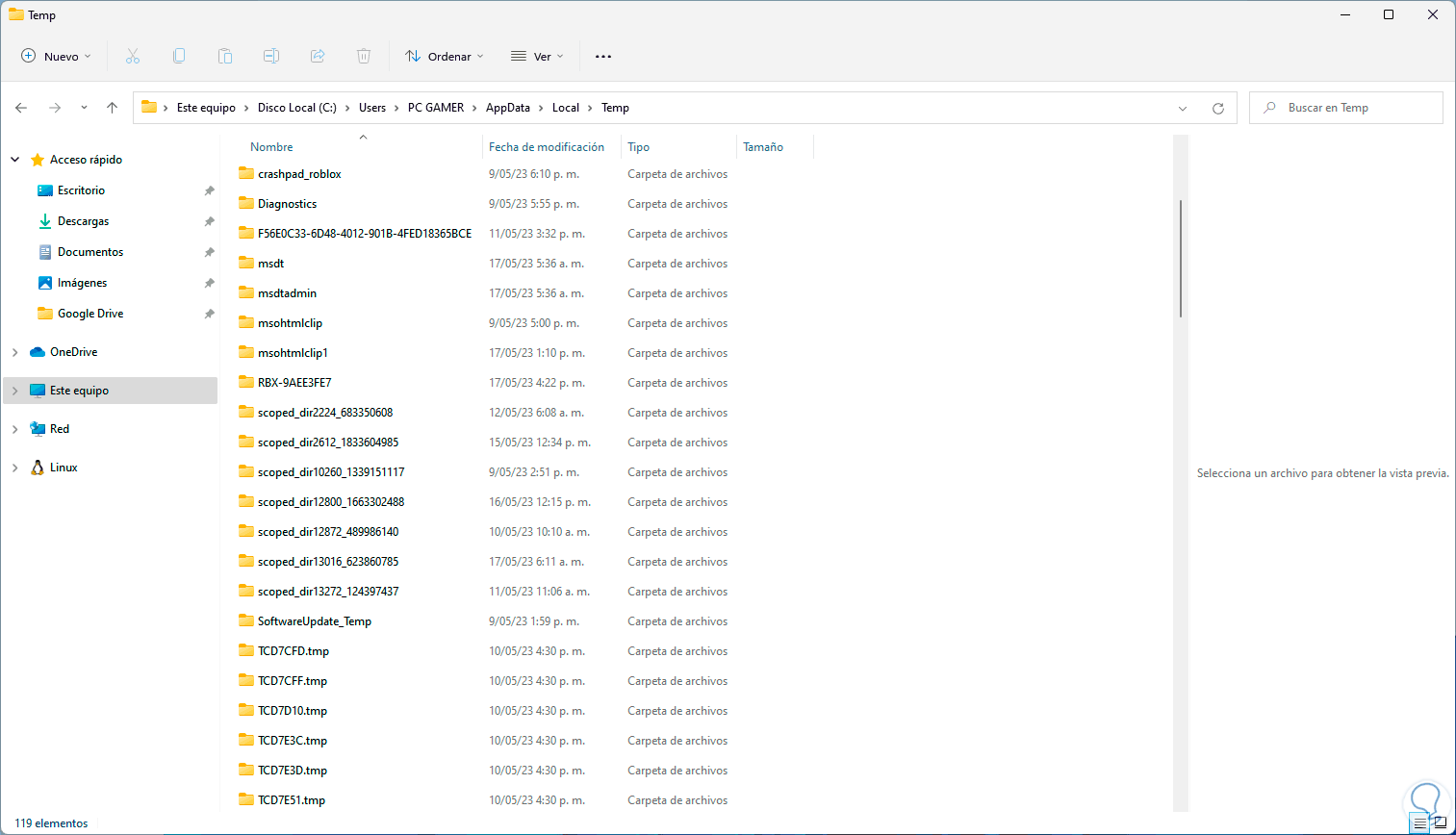 Los archivos temporales son pequeños archivos que se alojan en un espacio del disco duro a medida que usamos los programas y accedemos a la web, en ellos se alojan detalles de la app o el sitio, pero tener acumulación de esto puede desencadenar en el error 267 de Roblox de modo que podemos borrarlos sin problemas.