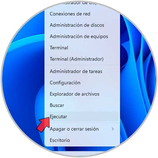 Para comenzar damos clic derecho sobre el botón de Windows para seleccionar Ejecutar: