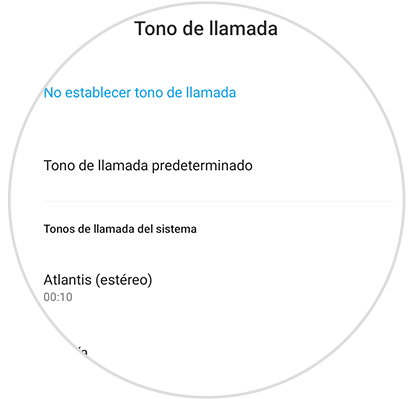 Ahora tendremos diferentes opciones para poder configurar nuestro tono de llamada. Podemos elegir que no se configure un tono de llamada, poner el tono por defecto del sistema o bien seleccionar uno del listado que aparece. Para elegir un tono de la lista puedes pulsar sobre él.