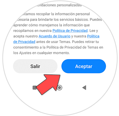 Ahora vamos a “Aceptar” para confirmar que queremos usar la opción de “Temas” para personalizar nuestro teléfono”.