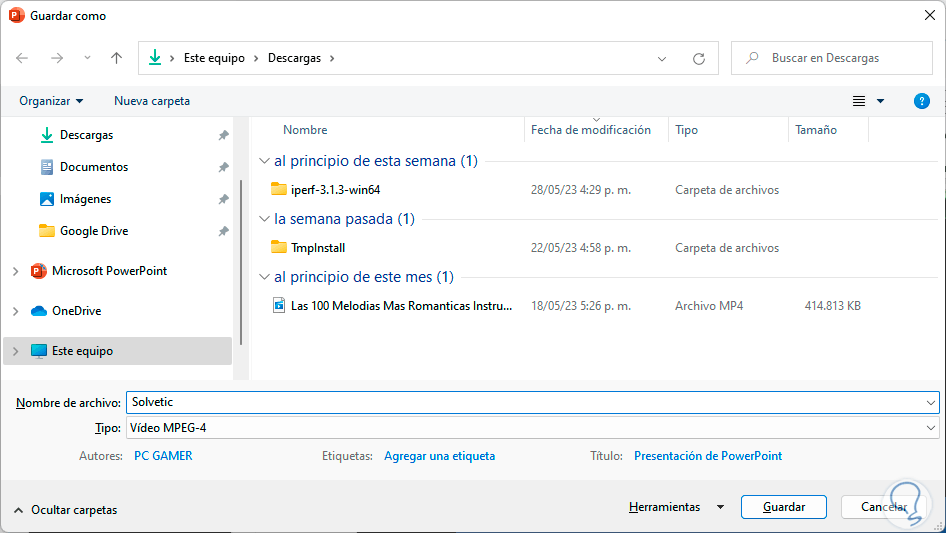 Damos clic en “Guardar” y en la parte inferior se dará paso a la creación del vídeo de PowerPoint: