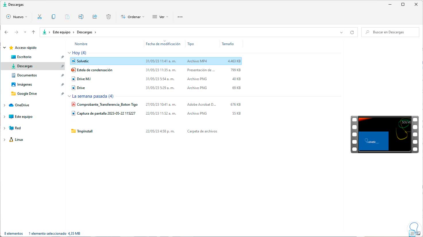 Cuando se haya creado podemos ir a la carpeta donde se guardó el vídeo: