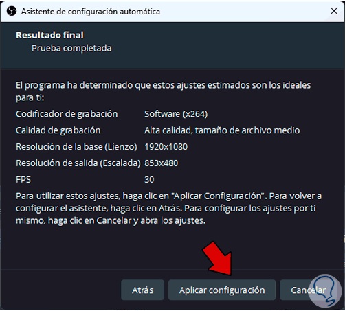 Si estamos de acuerdo damos clic en “Aplicar configuración” y tendremos acceso a OBS.