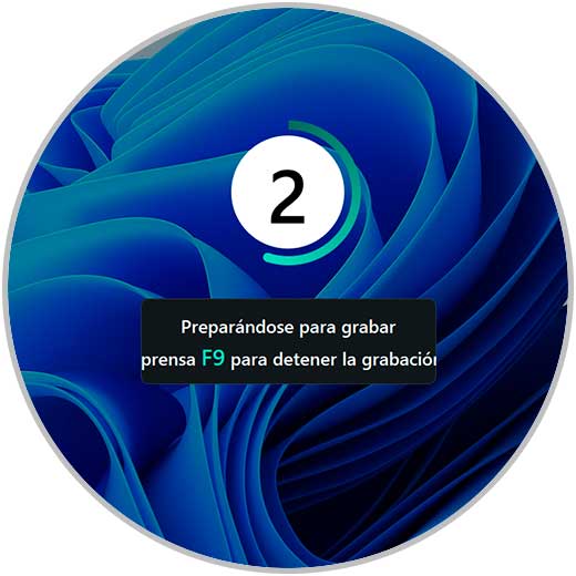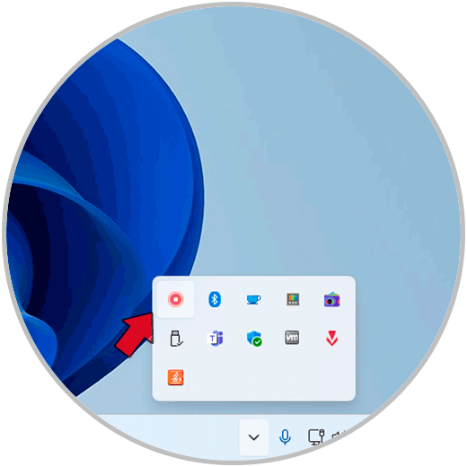 Para grabar la pantalla vamos a dar clic en el icono de grabación y grabamos lo que sea necesario, para detener la grabación puedes usar la tecla F9 o bien dar clic en el icono en la barra de tareas y allí dar clic en la opción Salir de la grabación:
