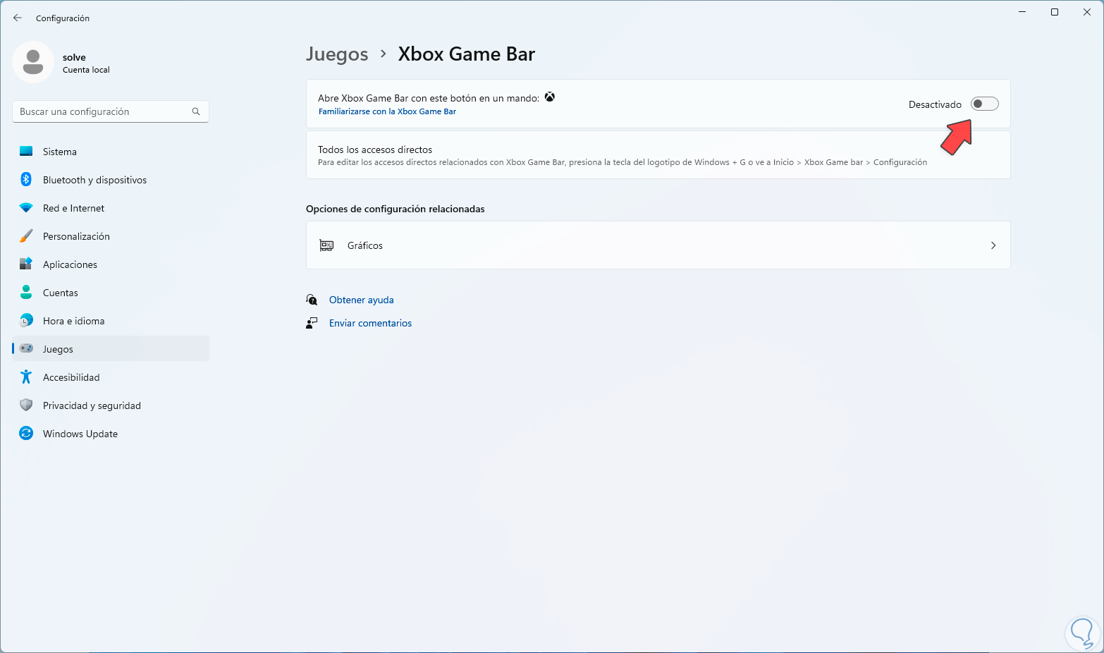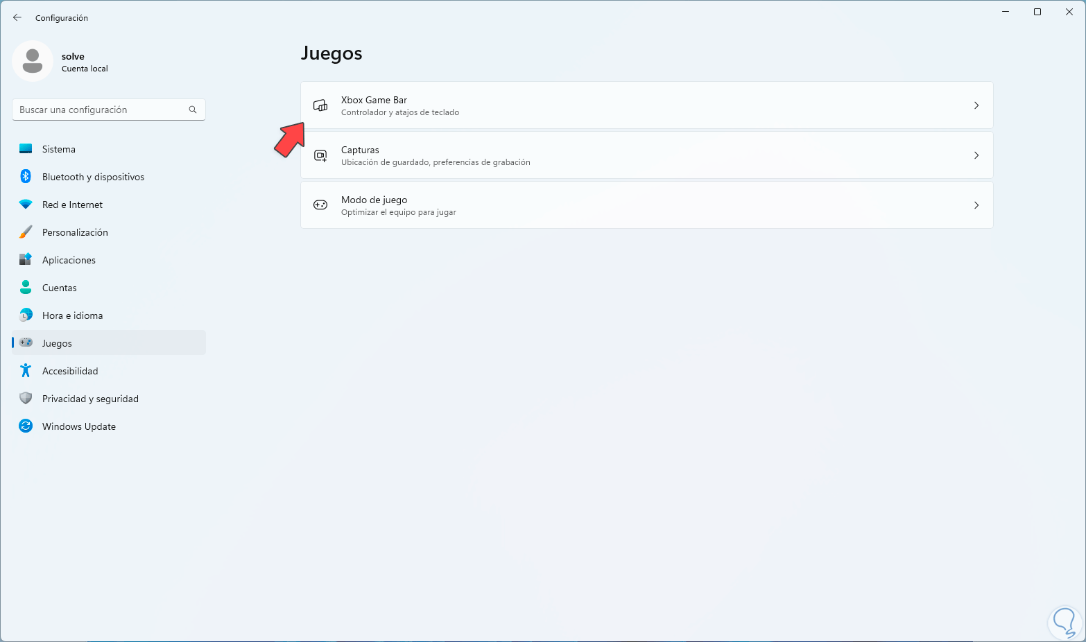 Una vez allí damos clic en “Xbox Game Bar” para ver lo siguiente: