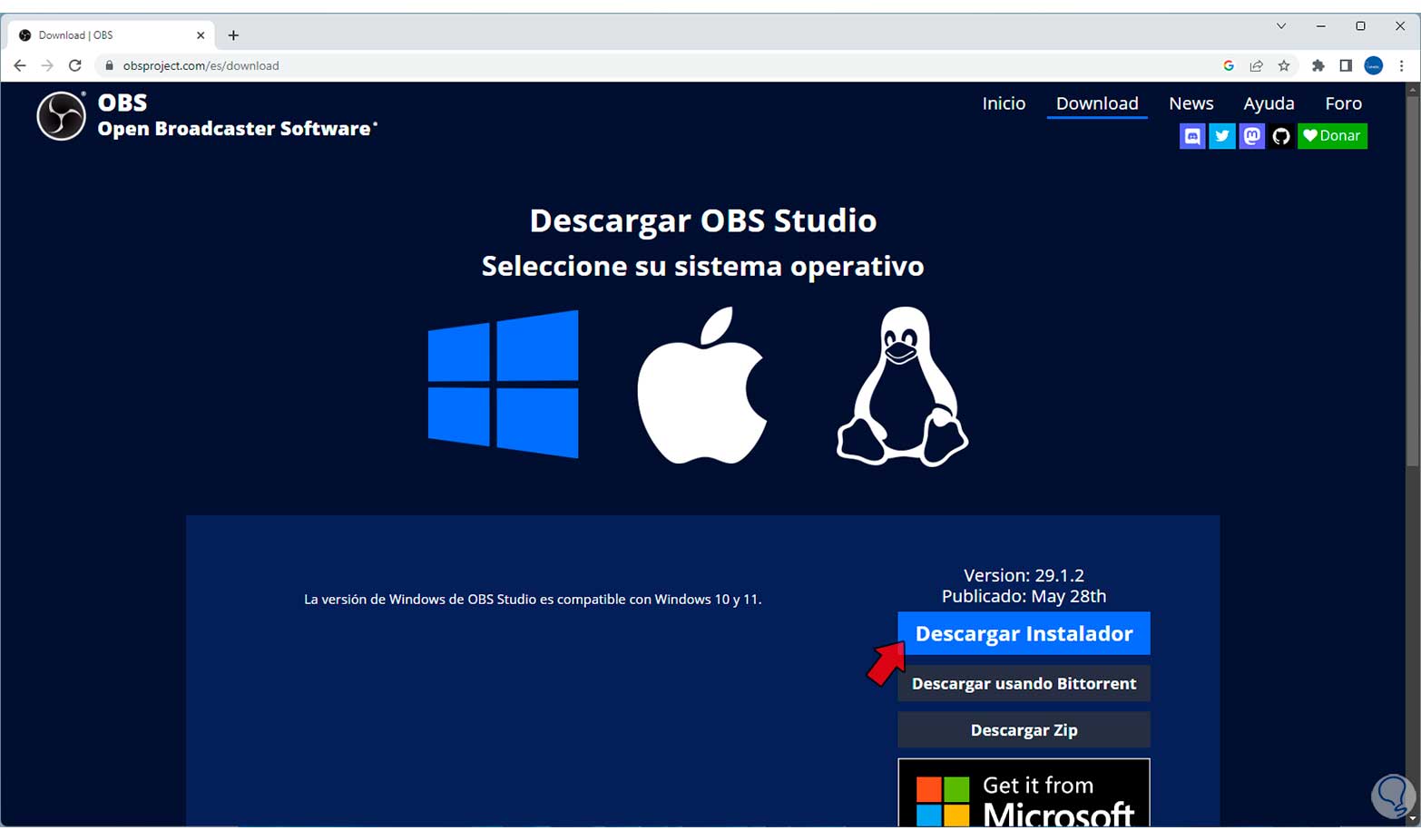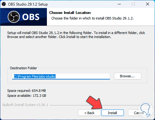 Damos clic en “Install” para proceder con la instalación de OBS: