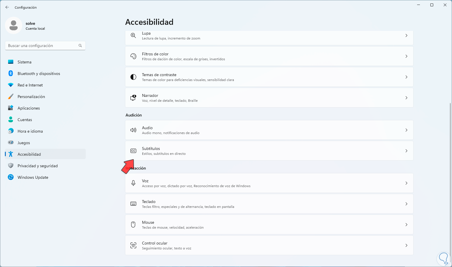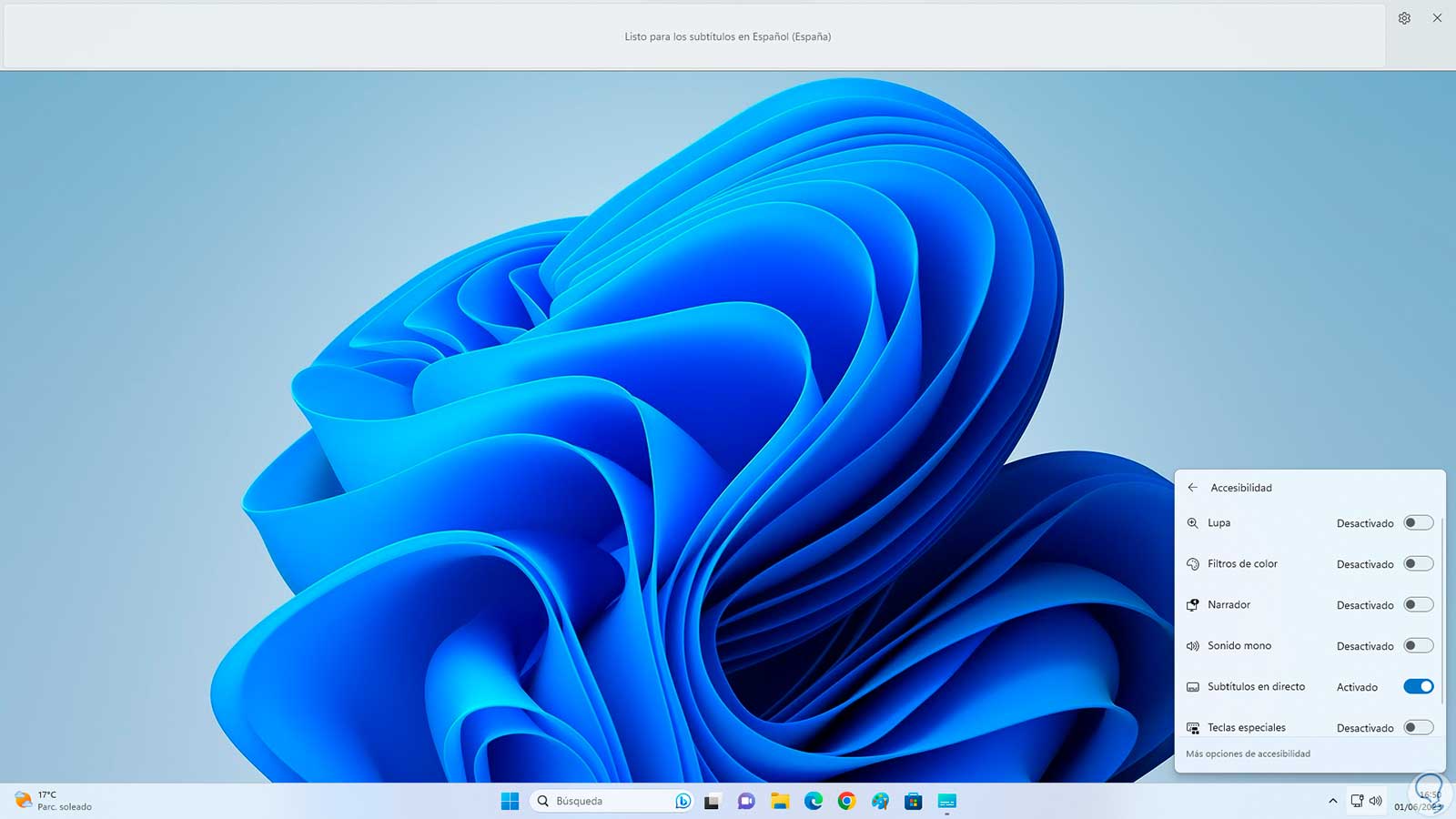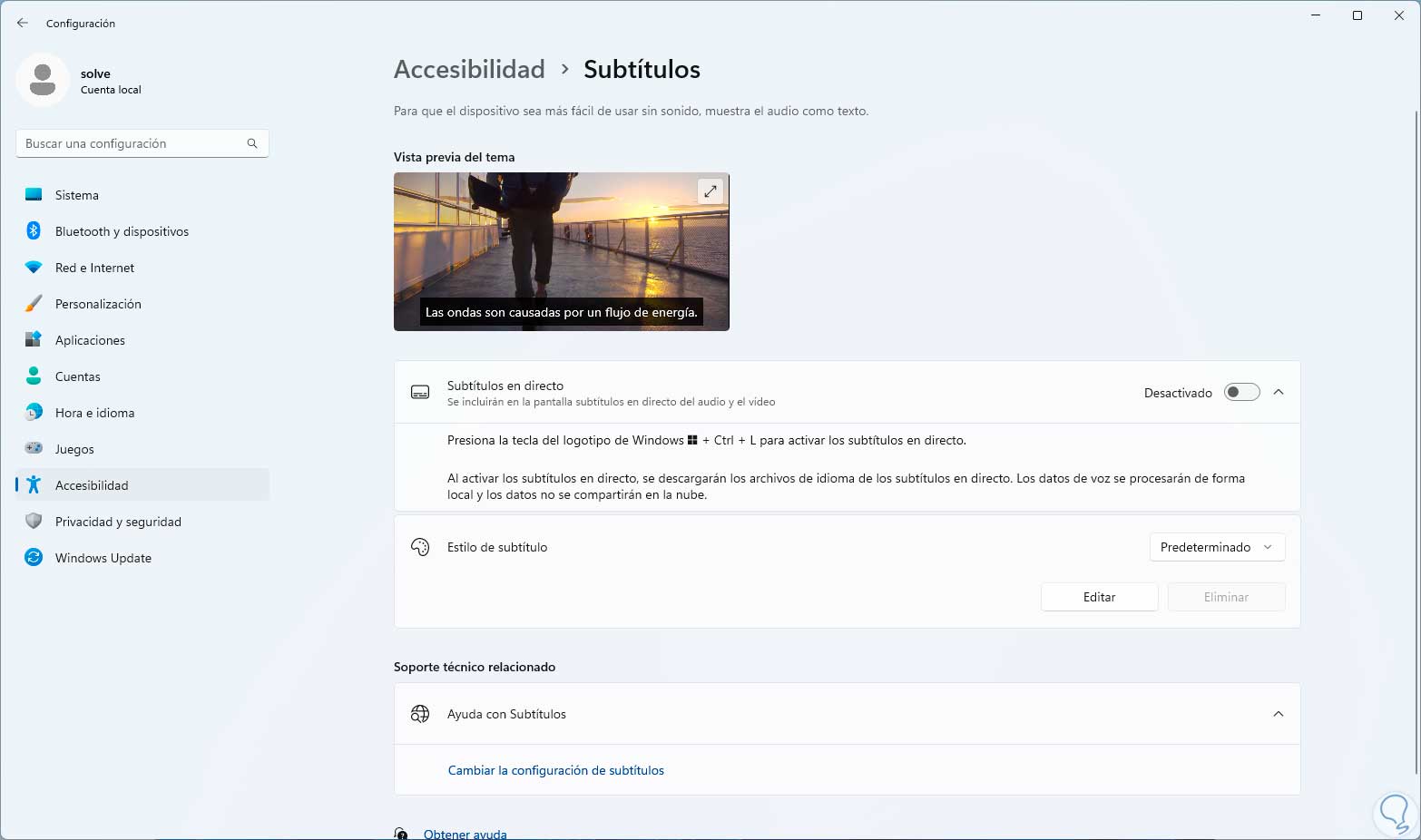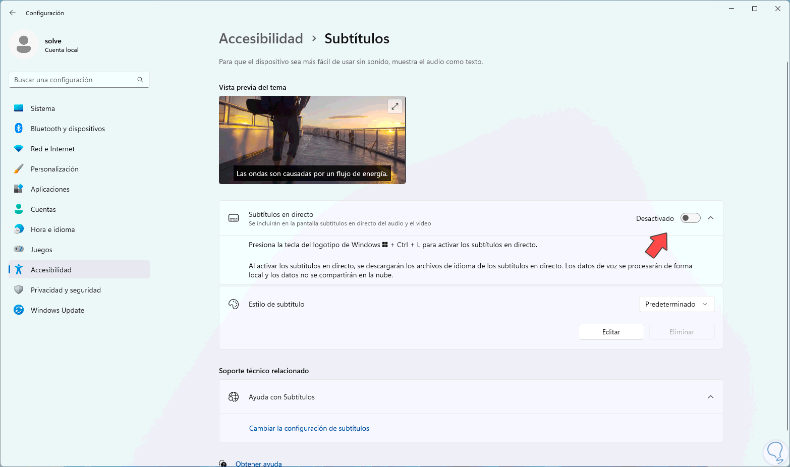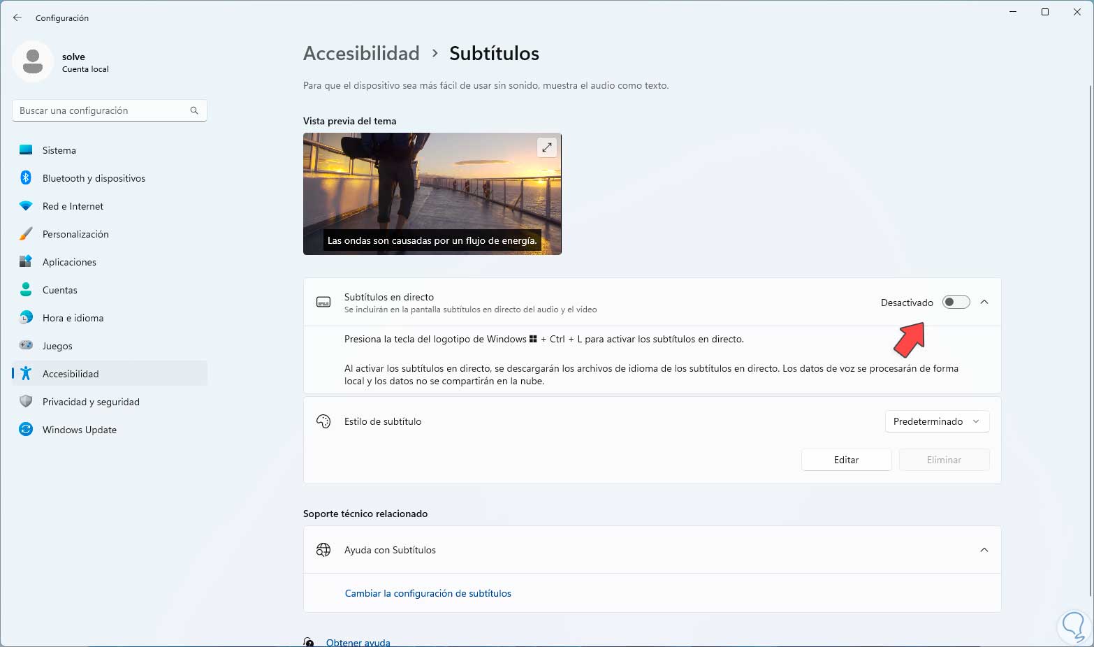 Esta es otra de las opciones sencillas y funcionales para activar o no los subtítulos en vivo en Windows 11.