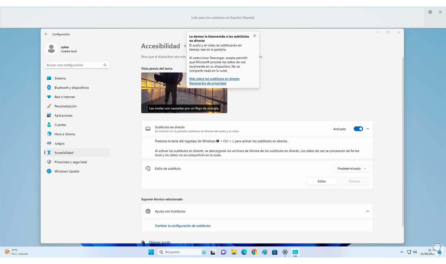 Podemos configurar tanto activando como desactivando estos subtítulos de algunas maneras funcionales y Solvetic te explicará cada una de ellas en este tutorial. De esta forma conseguiremos poner subtítulos en directo en Windows 11 para que se vaya narrando en texto todo lo que va ocurriendo en nuestro sistema.