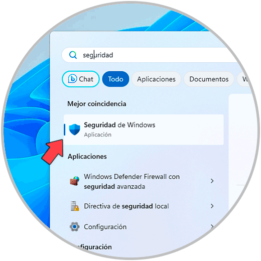 Damos clic en el menú Inicio y buscamos la palabra “seguridad”: