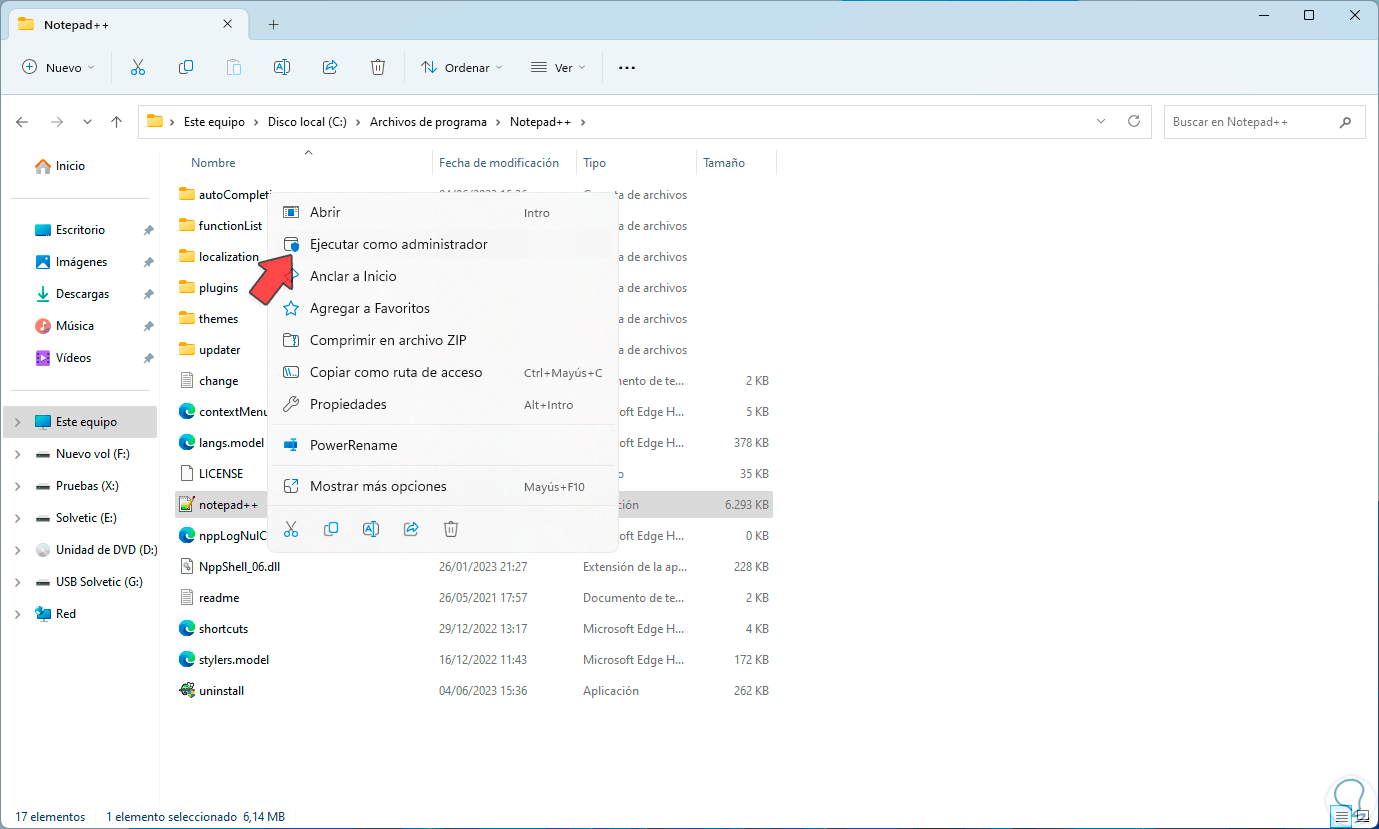 Como mencionamos muchas veces el error es directamente relacionado a permisos de ejecución por lo que podemos intentar abrir el programa como administradores directamente, para lograrlo vamos a ir a la ruta donde está el archivo del programa en error,