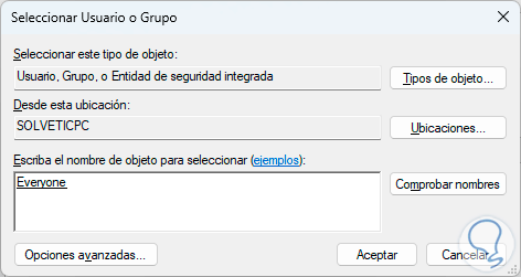 Debemos dar clic en “Comprobar nombres” para seleccionarlo. Da clic en “Aceptar” para que se añada a la lista.