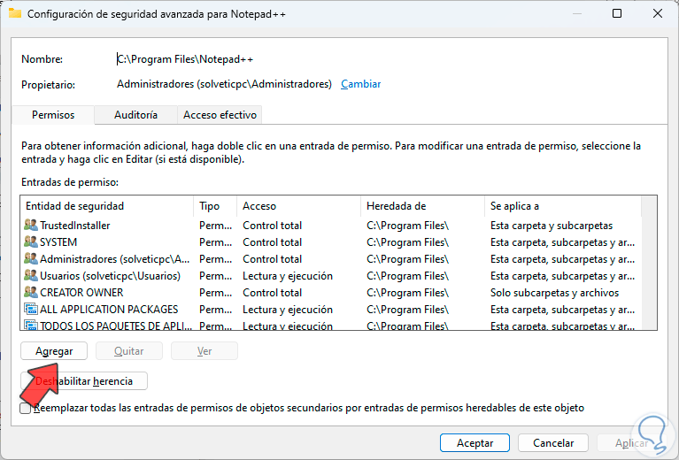 2 Solucionar Error Archivo para Escritura configurando el acceso