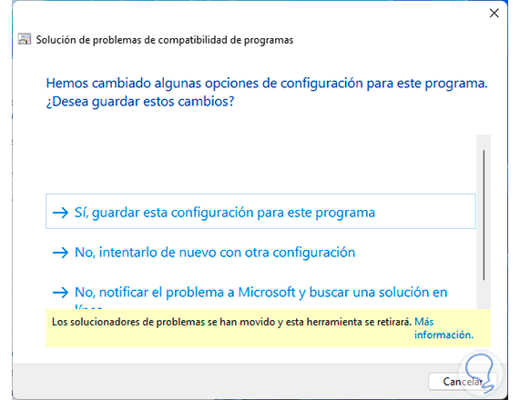 Allí definimos si guardamos o no esa configuración y al final veremos la causa del error y su corrección: