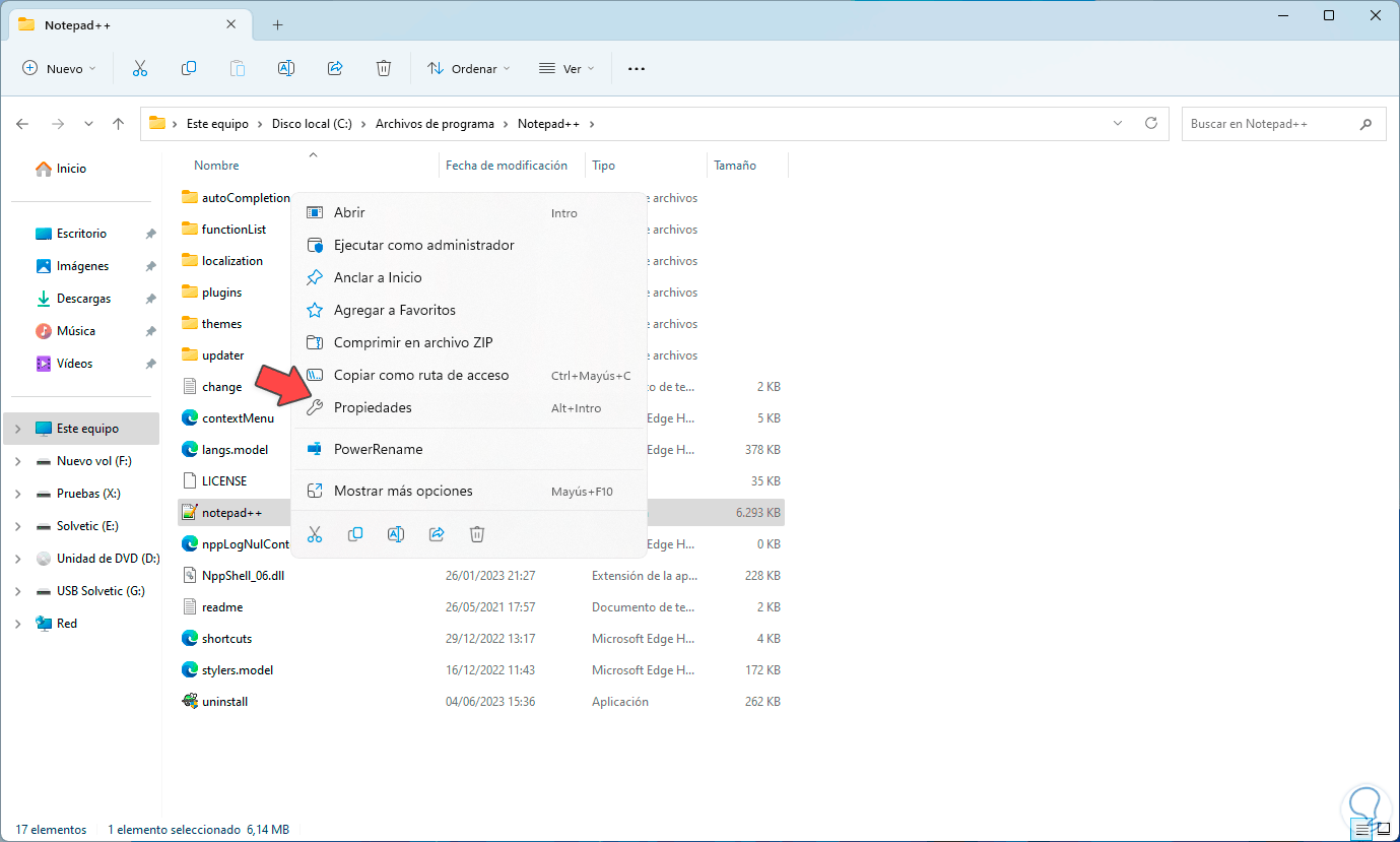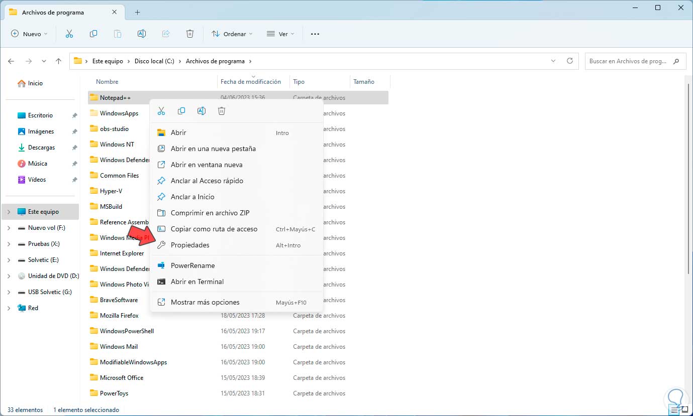Allí daremos clic derecho sobre él y seleccionamos la opción “propiedades”:
