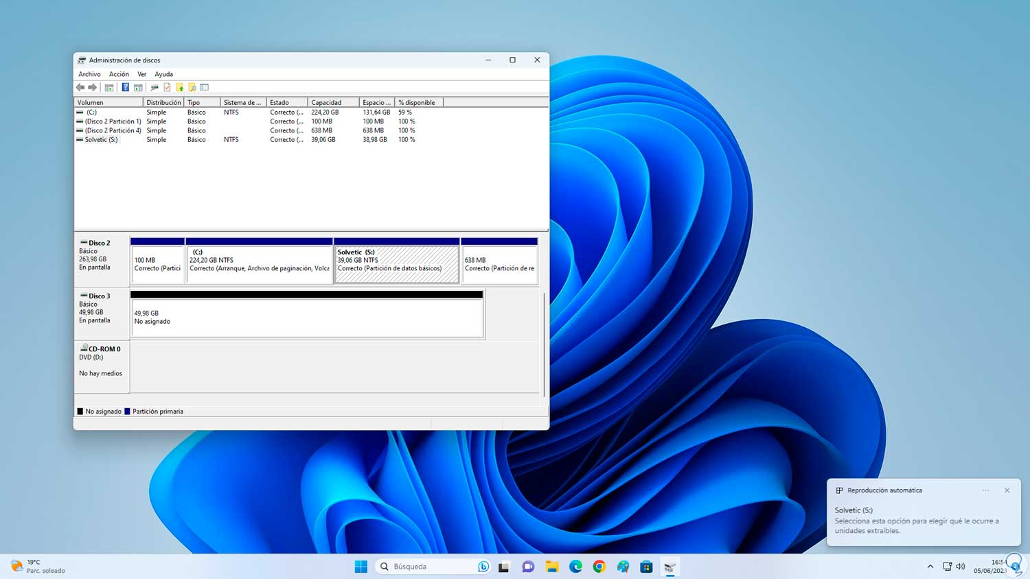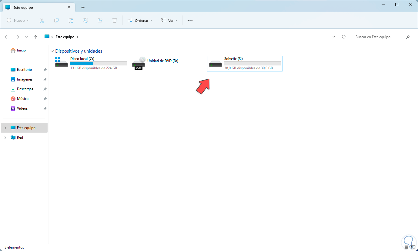 Abrimos el Explorador de archivos para comprobar que la partición fue creada correctamente en Windows: