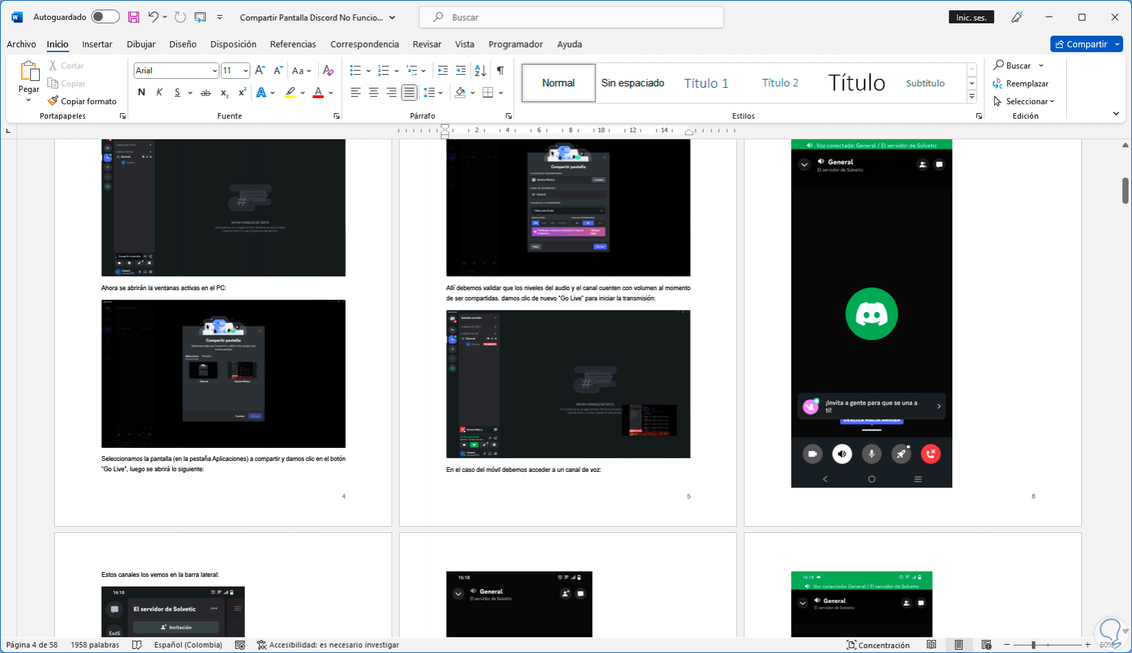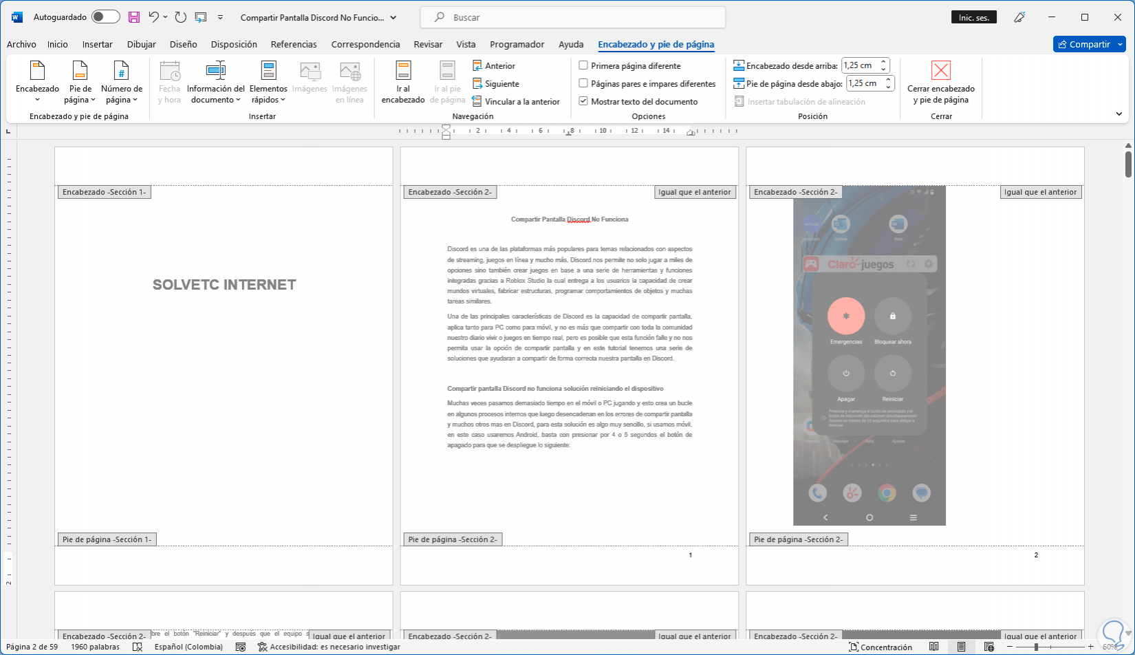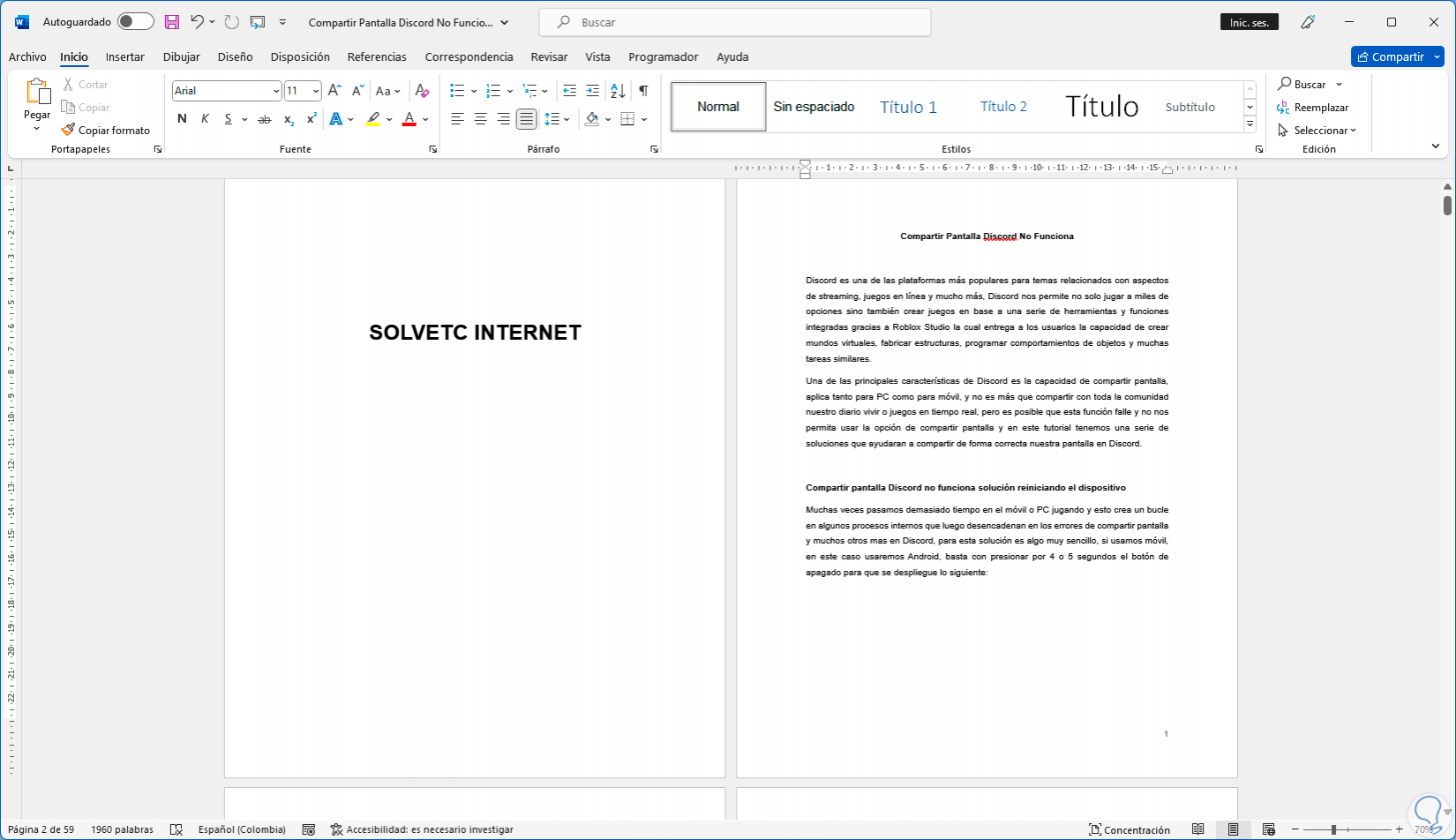 Ahora es posible que necesitemos que la numeración inicie desde una página en especifica y no desde el principio, Solvetic te dirá como lograrlo, vamos a abrir el documento para ver cómo está compuesto: