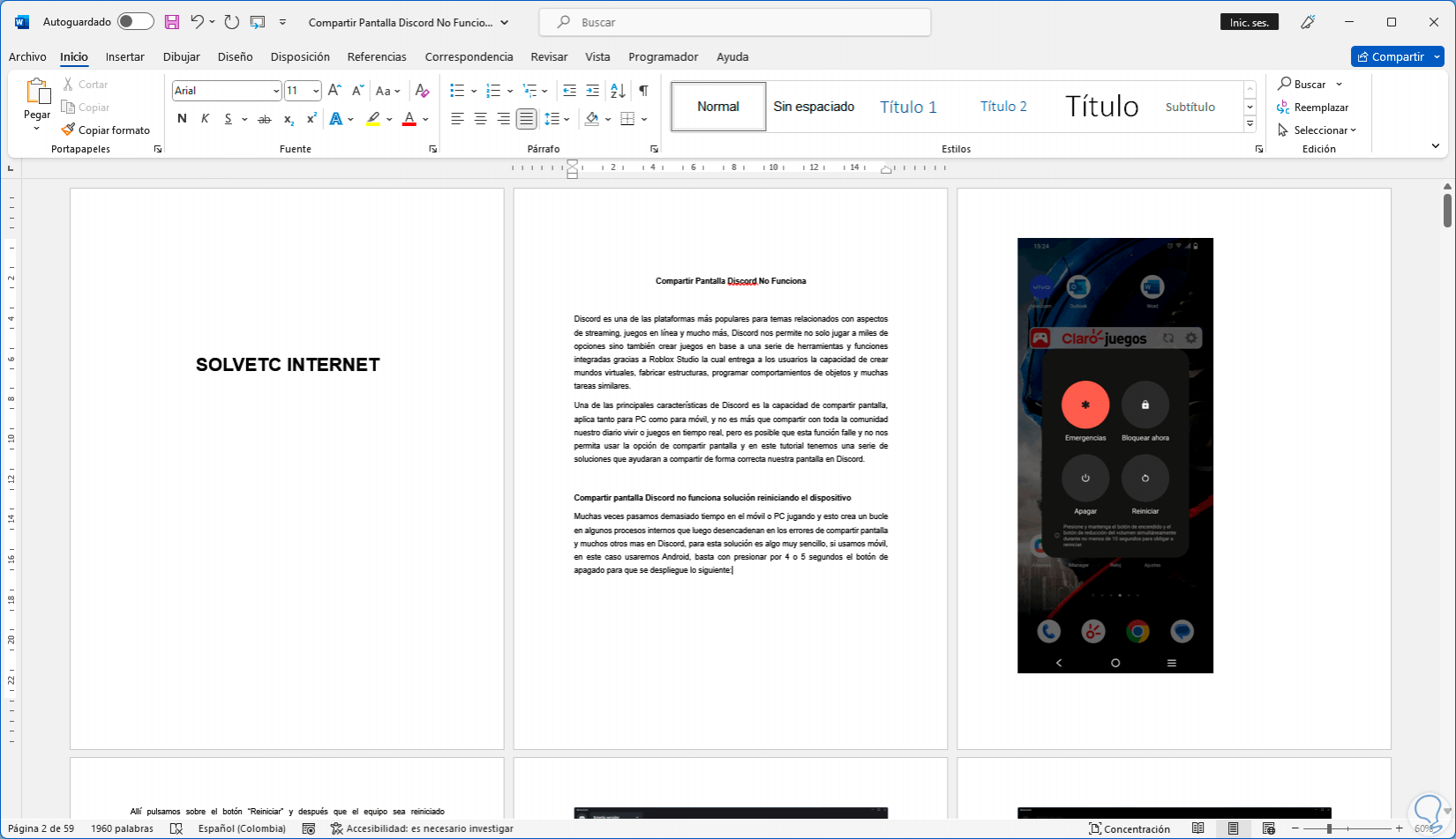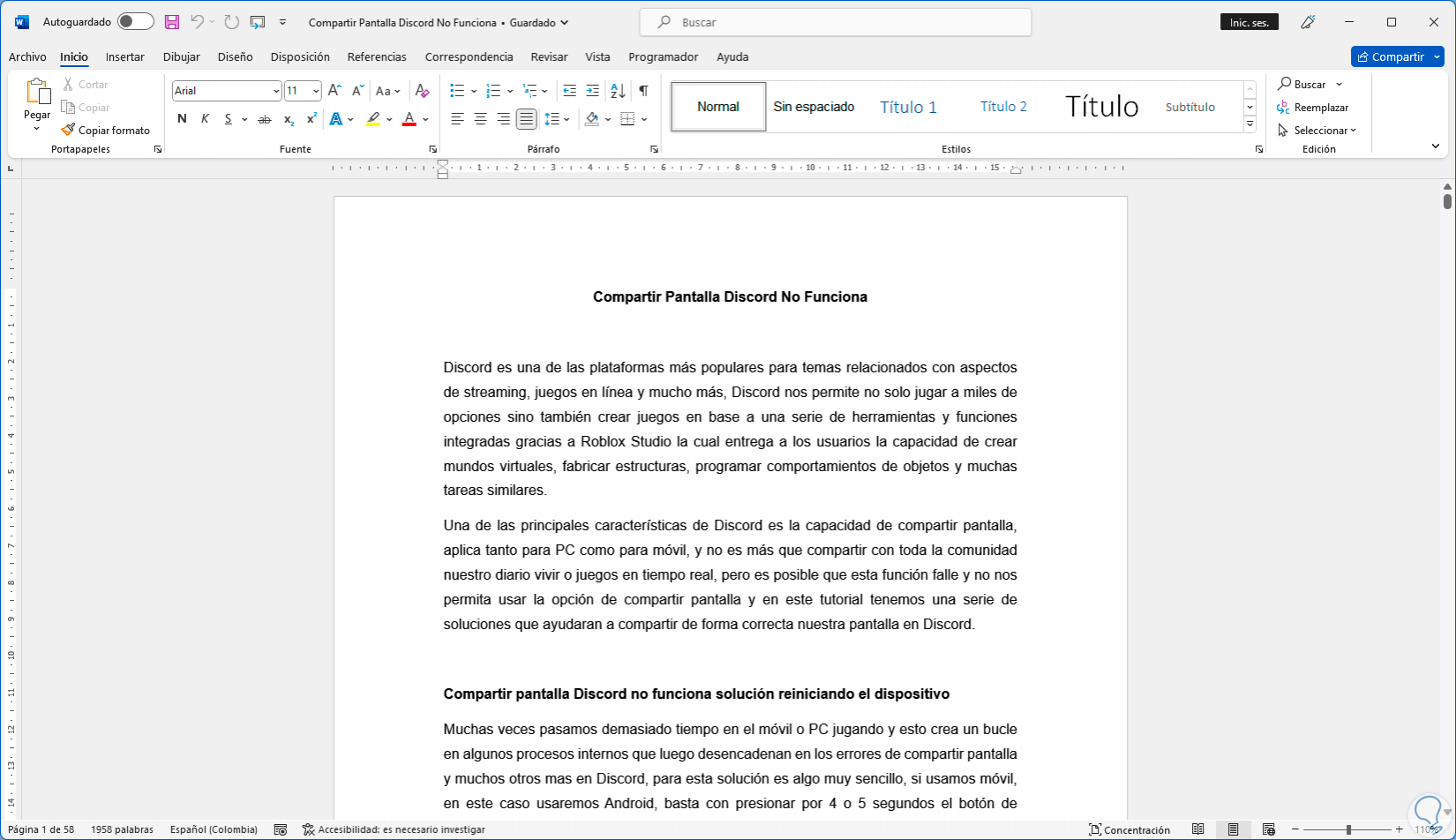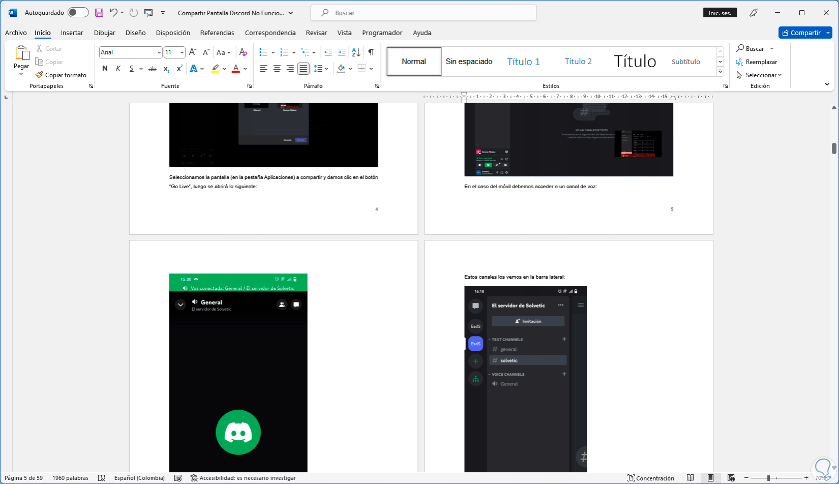 Ahora es posible que necesitemos que la numeración inicie desde una página en especifica y no desde el principio, Solvetic te dirá como lograrlo, vamos a abrir el documento para ver cómo está compuesto: