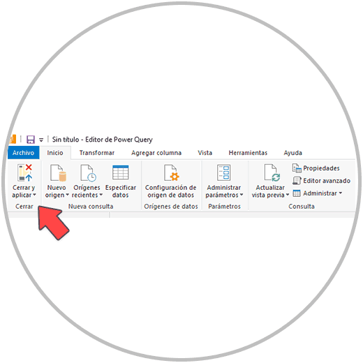 Ahora que ya hemos revisado y transformado los datos, aplicamos los cambios y cerramos el editor de Power Query desde la barra de tareas. Tal y como te mostramos abajo en la imagen: