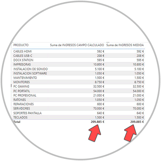 Cómo podemos ver en la imagen, los totales son correctos, y los resultados a nivel de fila por producto serían correctos.