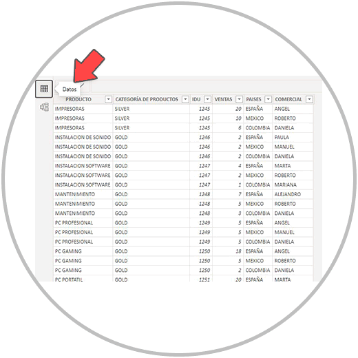 Lo que haremos ahora es ir a la vista de datos en Power BI.