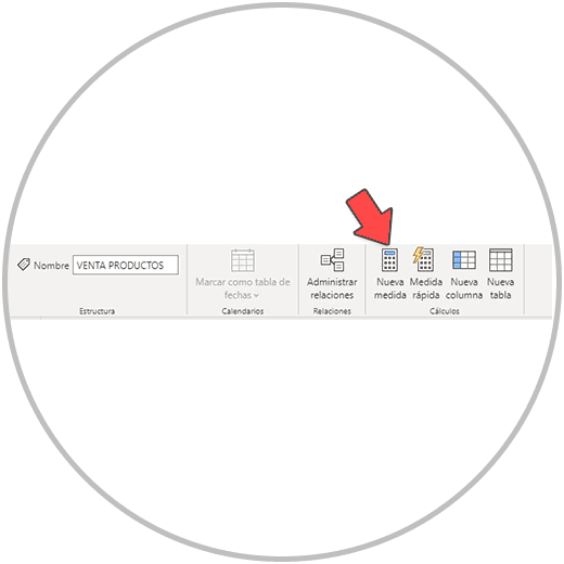 Hacemos un clic en la tabla “VENTA PRODUCTOS” y en la barra de tareas, buscaremos ahora la opción “Nueva Medida”.