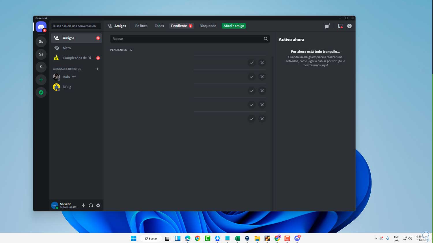 Muchas veces el error es tan simple como procesos de Discord que se “cuelgan” y afectan su uso, para solucionar esto, si es esta la causa, basta con reiniciar Discord.