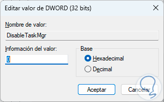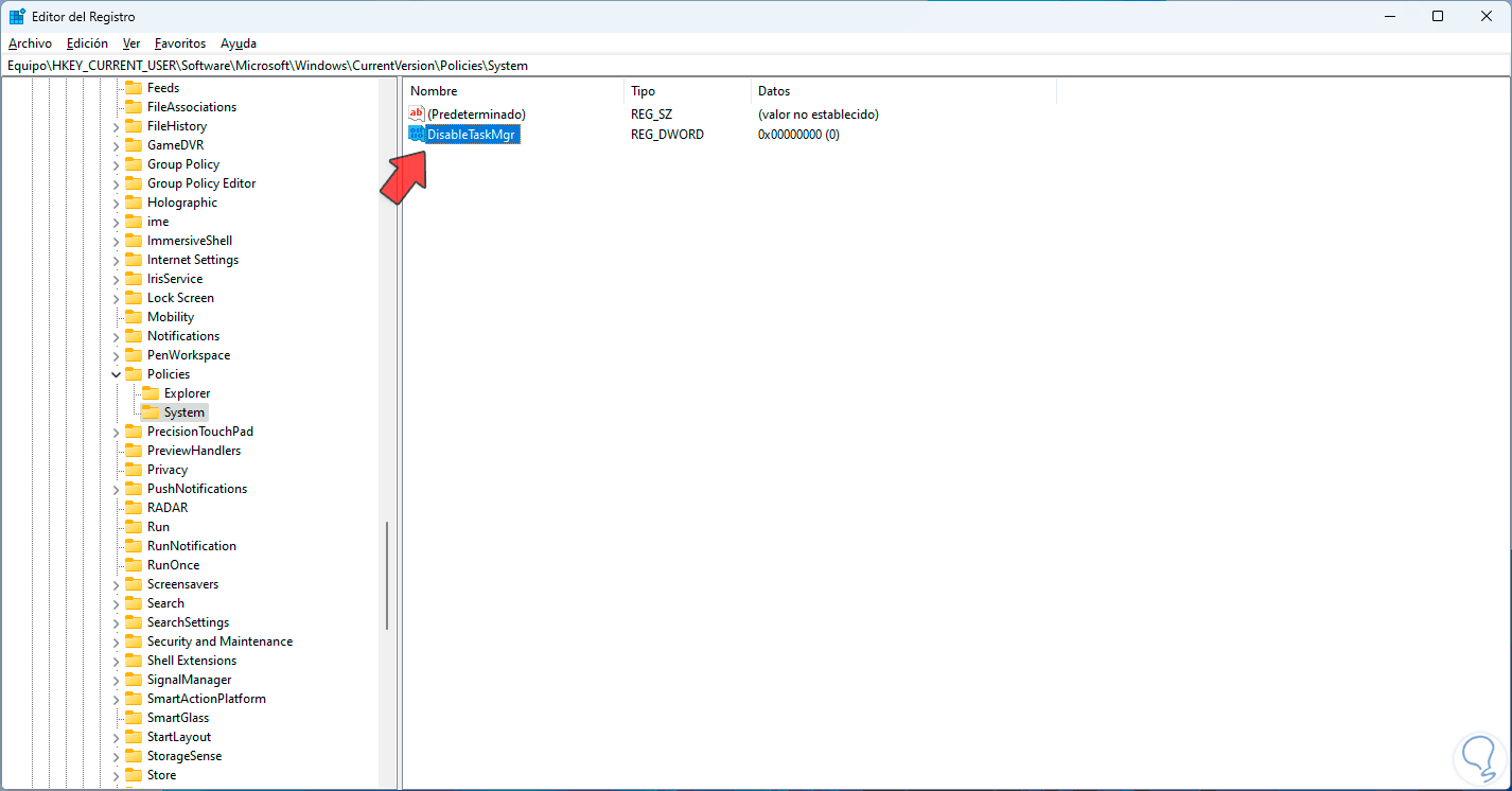 Selecciona el valor DisableTaskMgr: