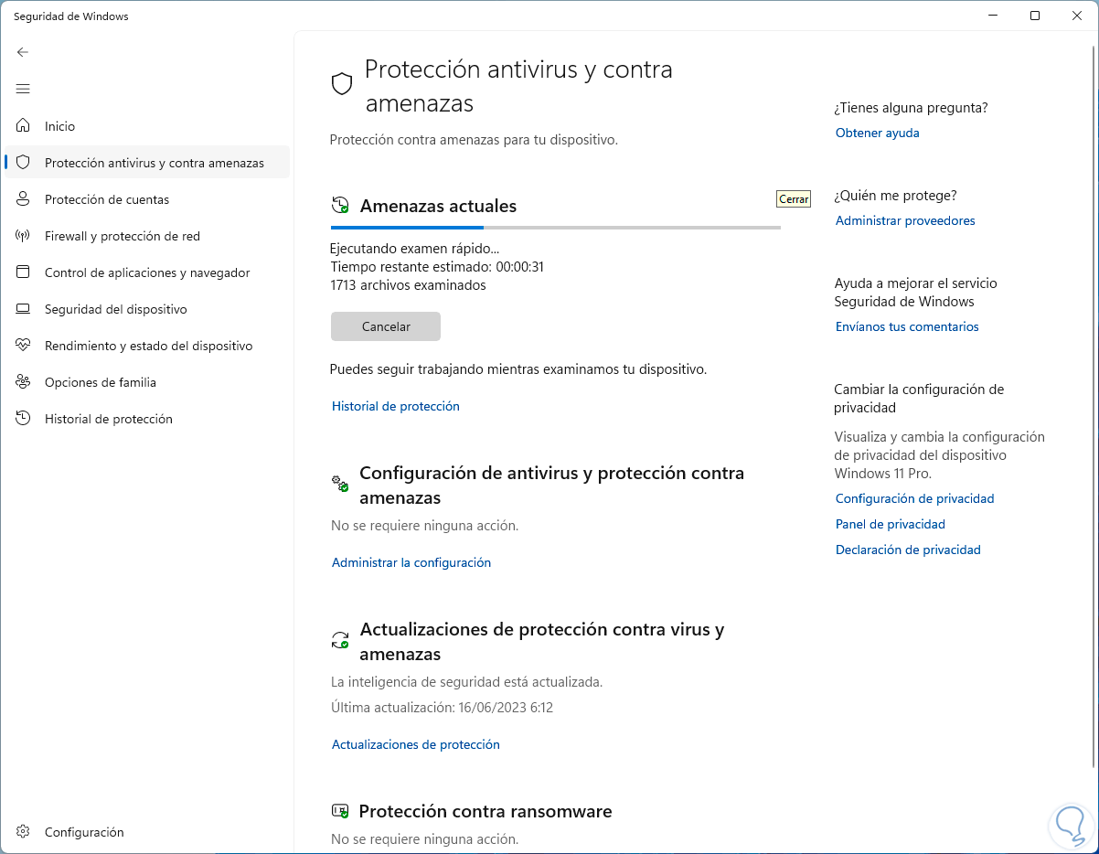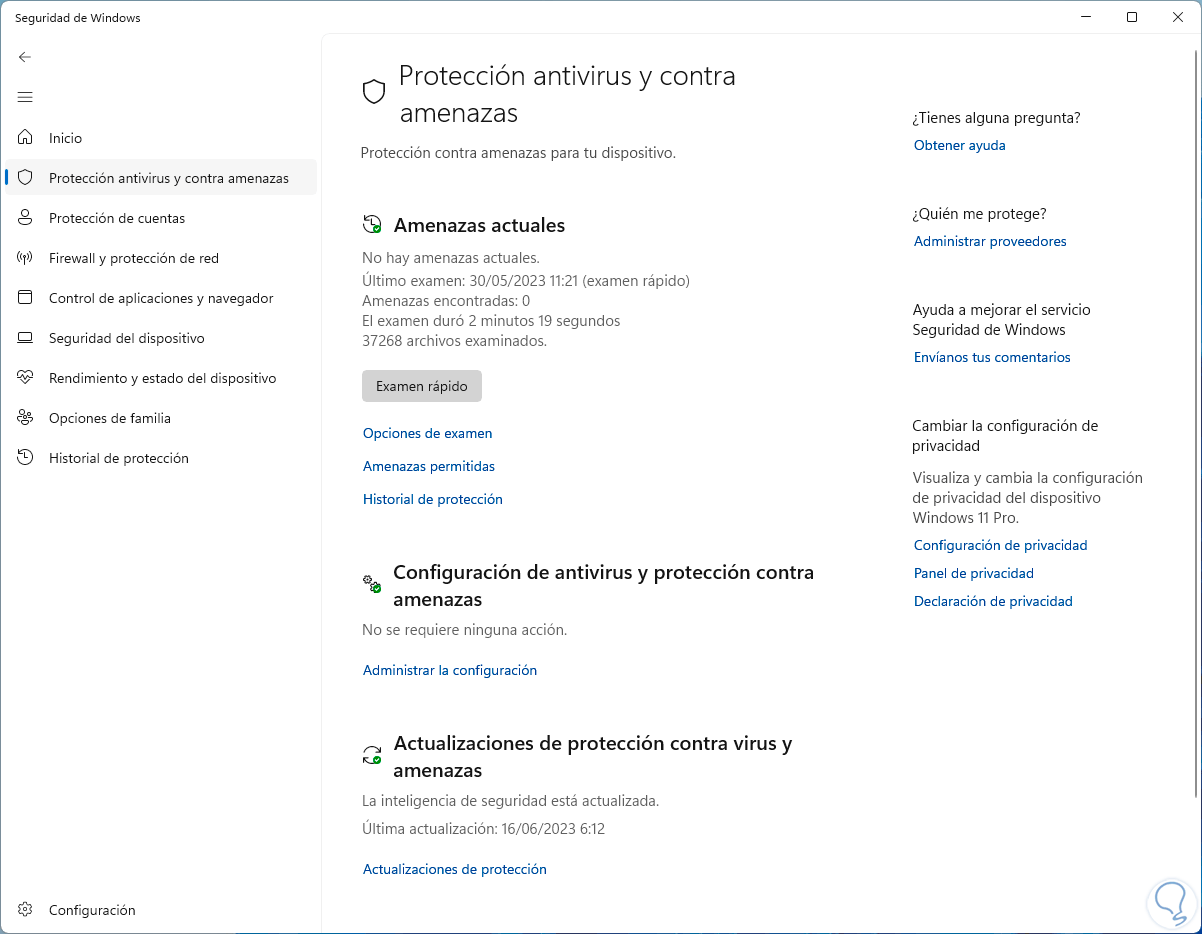 En la consola desplegada vamos a la sección “Protección antivirus y contra amenazas”: