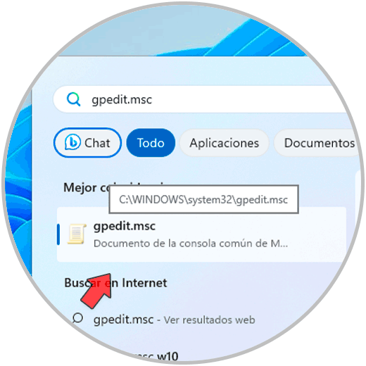 Para su uso en el buscador de inicio ingresamos “gpedit.msc”, luego damos clic en el editor de la directiva: